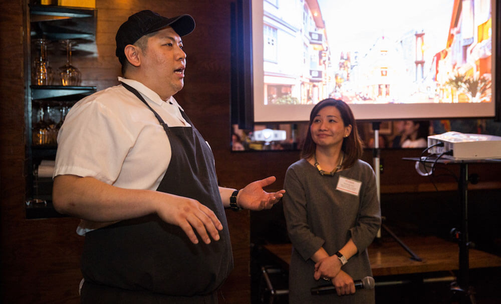 Chef Max Ng of Momofuku Ssam Bar, and Kershing Goh, STB regional director, welcome guests. (Ester Segretto photo)