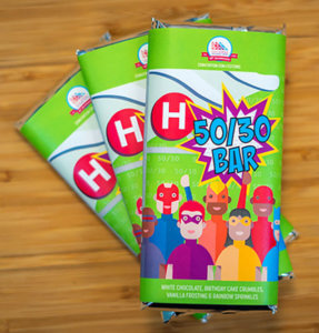O’Donnell and Haven came up with the 50/30 Bar to commemorate the anniversaries. The treat features white chocolate, birthday cake crumbles, vanilla frosting, and rainbow sprinkles.