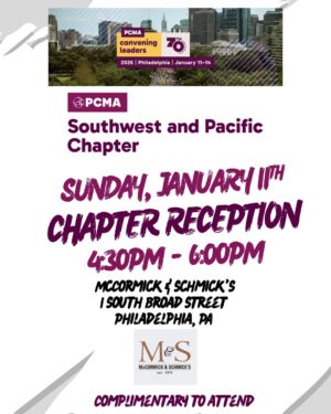 Mark your calendars for the PCMA Southeast Chapter Reception at Convening Leaders 2026 on Sunday, January 11, 2026, in Philadelphia, PA! Convening Leaders is an unparalleled opportunity to represent your workplace and PCMA