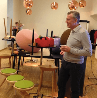 Bo Krüger, with the pile of furniture that greeted workshop participants at Bella Center Copenhagen.