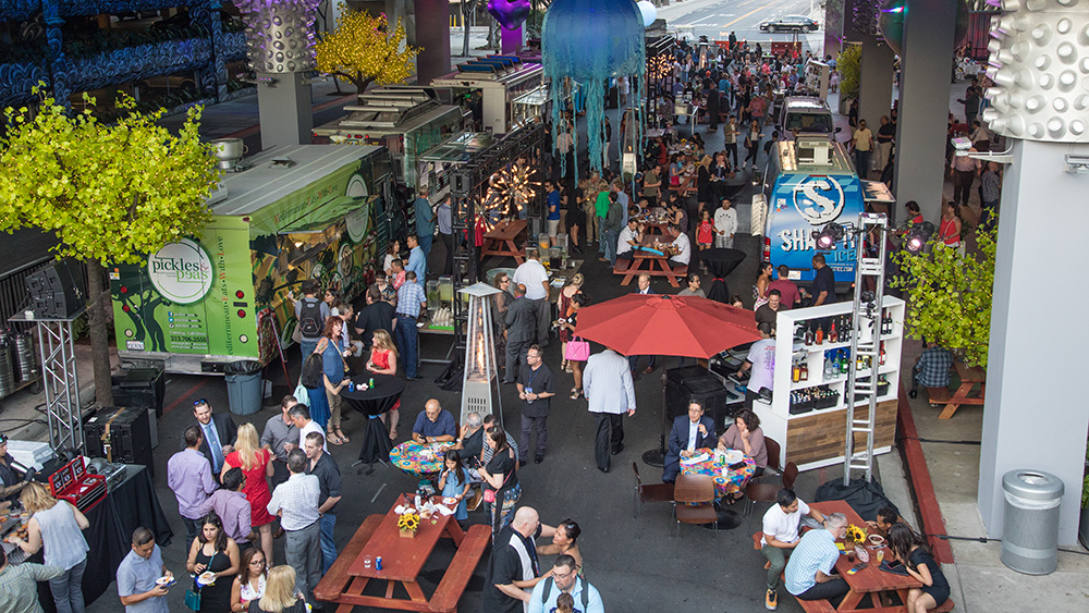 The unique Cove space at the Long Beach Convention & Entertainment Center is well-suited for food truck rodeos and street parties.