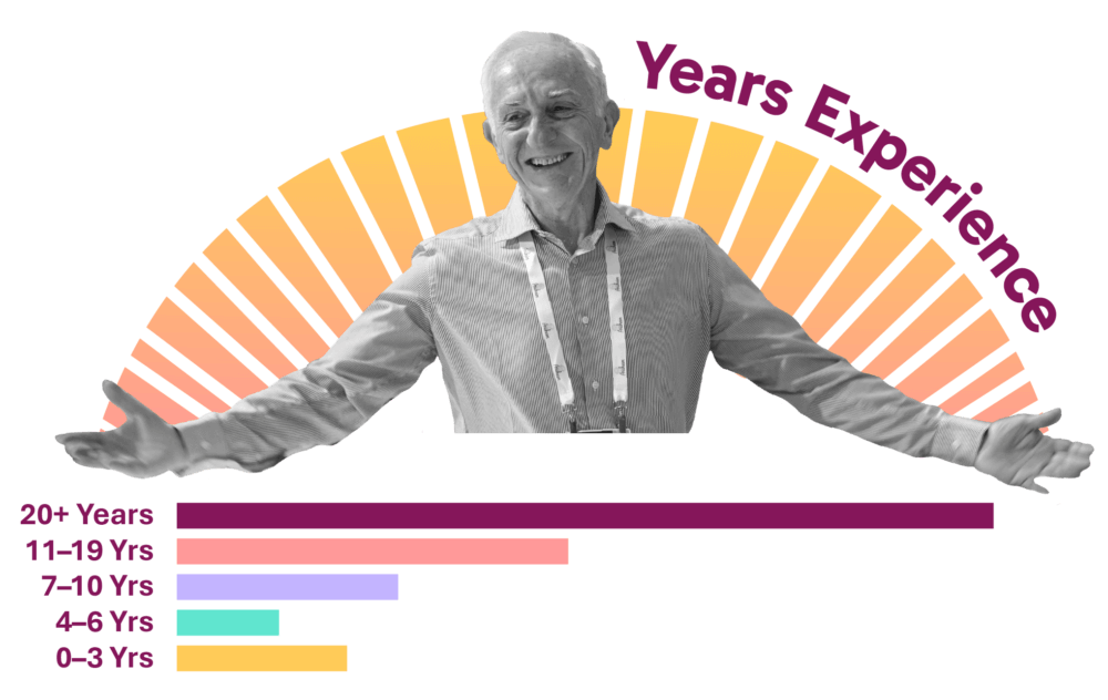 In terms of their roles, the greatest number of respondents fell into the manager category (38 percent), followed by director (24 percent), and CEO/owner (18 percent). Six percent said they were at the SVP/VP level, and 10 percent identified as assistants/ associates/ coordinators, which aligns with the previous data point that one out of 10 survey participants have spent fewer than four years in the industry. Thirteen percent of respondents identify as the next-gen contingent of the workforce (30 years old or younger).