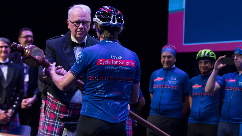 Thirty-five ESSKA delegates took advantage of Glasgow’s prime location as the gateway to Scotland by participating in a four-day cycling race to raise money to support research led by the ESSKA Foundation. The 377-km (234-mile) “Cycle for Science” challenge took delegates on a tour through the Scottish countryside before returning to the city just in time for the opening of the congress. It was a memorable experience for those involved — locals and visitors alike — and, at the same time, left a pos- itive legacy for the Foundation. “ESSKA is a great example of how we, along with our partners across the city, can work with conference organizers to take the subject matter of the conference outside the walls of the convention center and into the local community,” said Aileen Crawford, Glasgow Convention Bureau’s head of conventions.