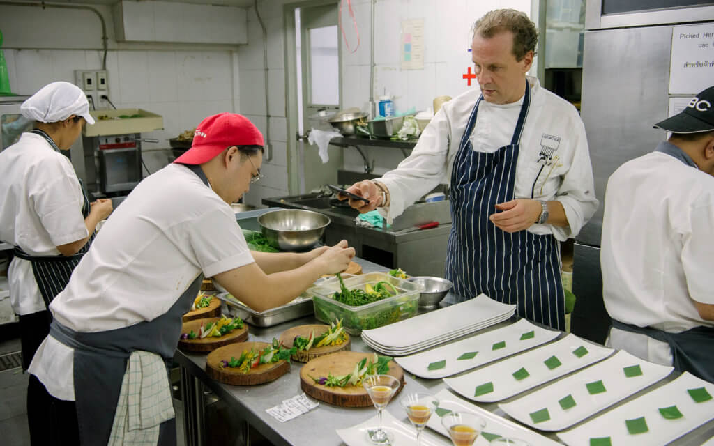 What’s next? “We have a very different goal, and that’s to get the restaurant outside of Bangkok,” said Jones. They want to downsize, going from accommodating 80 guests at present to no more than 15 guests a night. He envisions an entirely off-the-grid, self-sustaining restaurant on a plot of land that can produce its own food and electricity and recycle its waste and water. “I think,” Jones said, that’s “10 to 12 years away.”