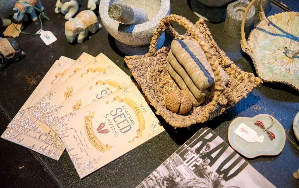 That’s harder than it sounds. In the restaurant’s outdoor garden, Songvisava had prepped a station for our group to make our own seeded paper. Mixing old receipts with water, I spent several minutes arranging the pulp into a rectangle on top of a framed mesh screen, then squeezed out the excess water with pieces of foam. What’s left looked like a very waterlogged piece of paper. I flipped the frame, but the paper fell apart in clumps. I tried again, this time thinning out the pulp even more. I flip, and it sticks. Success! Well, almost. When we hang the paper to dry, half of it falls to the ground. Songvisava’s neat square, however, hangs on the clothesline intact and ready to dry. This definitely requires some practice — and patience.
