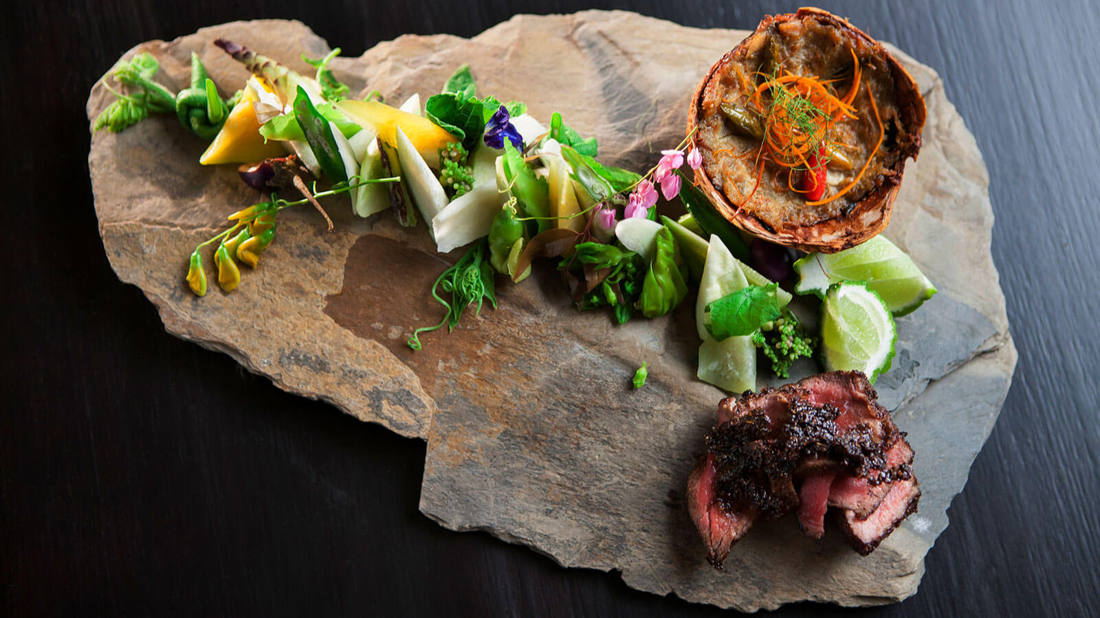 Netflix's documentary series "Chef's Table" featured Bo.lan — and this grilled coconut relish of salted fish with assorted vegetable and spice crusted beef — in a Season 5 episode. (Michael Chevas/Netflix)
