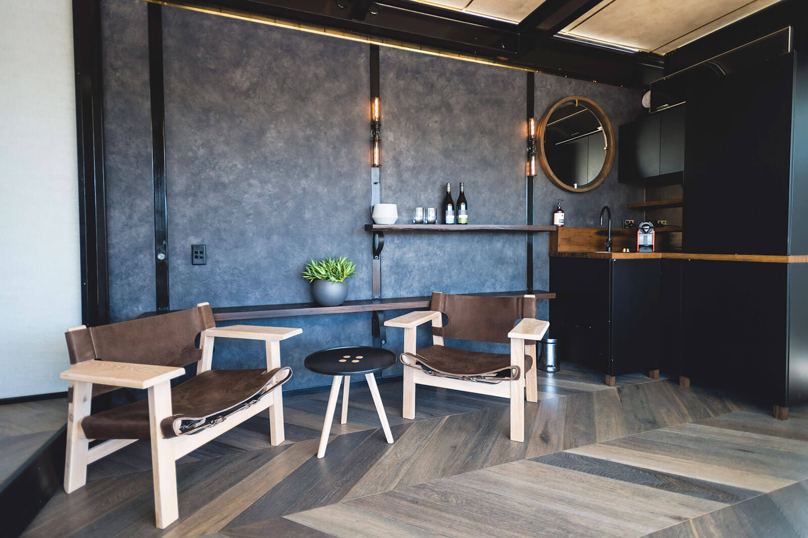 The company Contained, known for crafting bars, restaurants, offices and hotels out of shipping containers, created the opulently appointed and sustainably crafted housing units.