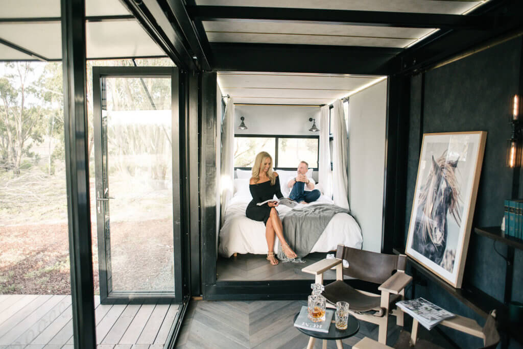 Two shipping containers converted into mini-hotels awaits their guests at Waratah Hills Vineyard in Victoria’s South Gippsland. (Daniel John Bilsborough Photography)